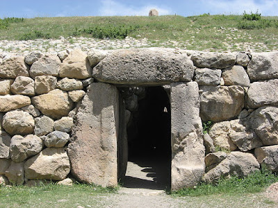 | Una poterna (la de salida) de la ciudad de Hattusa. Tenía un pasillo subterráneo de cientos de metros que conectaba con la ciudad. (Autor foto: travelling runes. Fuente: wikipedia). This file is licensed under the Creative Commons Attribution-Share Alike 2.0 Generic license. |
