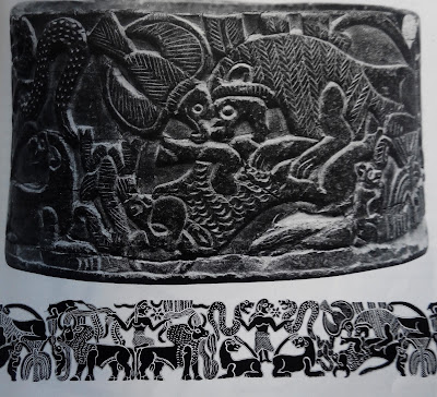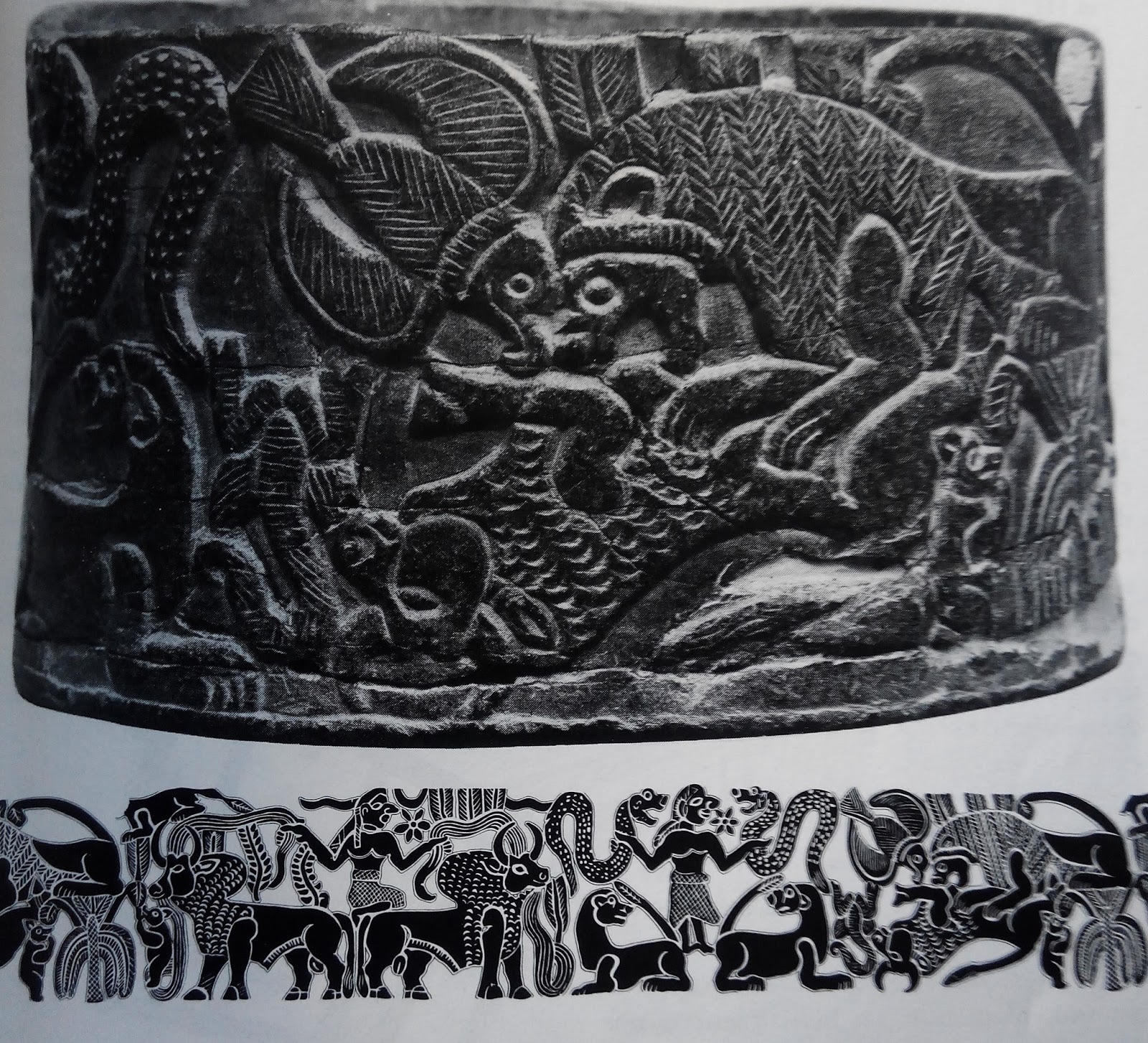 Por ejemplo, a nivel escultórico tenemos el conocido como Vaso de Jafache, llamado también como Vaso de la Señora de las Bestias, ya que se puede apreciar que hay una mujer, en este caso es una diosa, en medio de muchos animales contrapuestos, con los cuales se está enfrentando, o al menos, agarrando con sus manos. Está fabricado en esteatita, una piedra dura que se traía del sur del Elam, es decir, desde muy lejos.