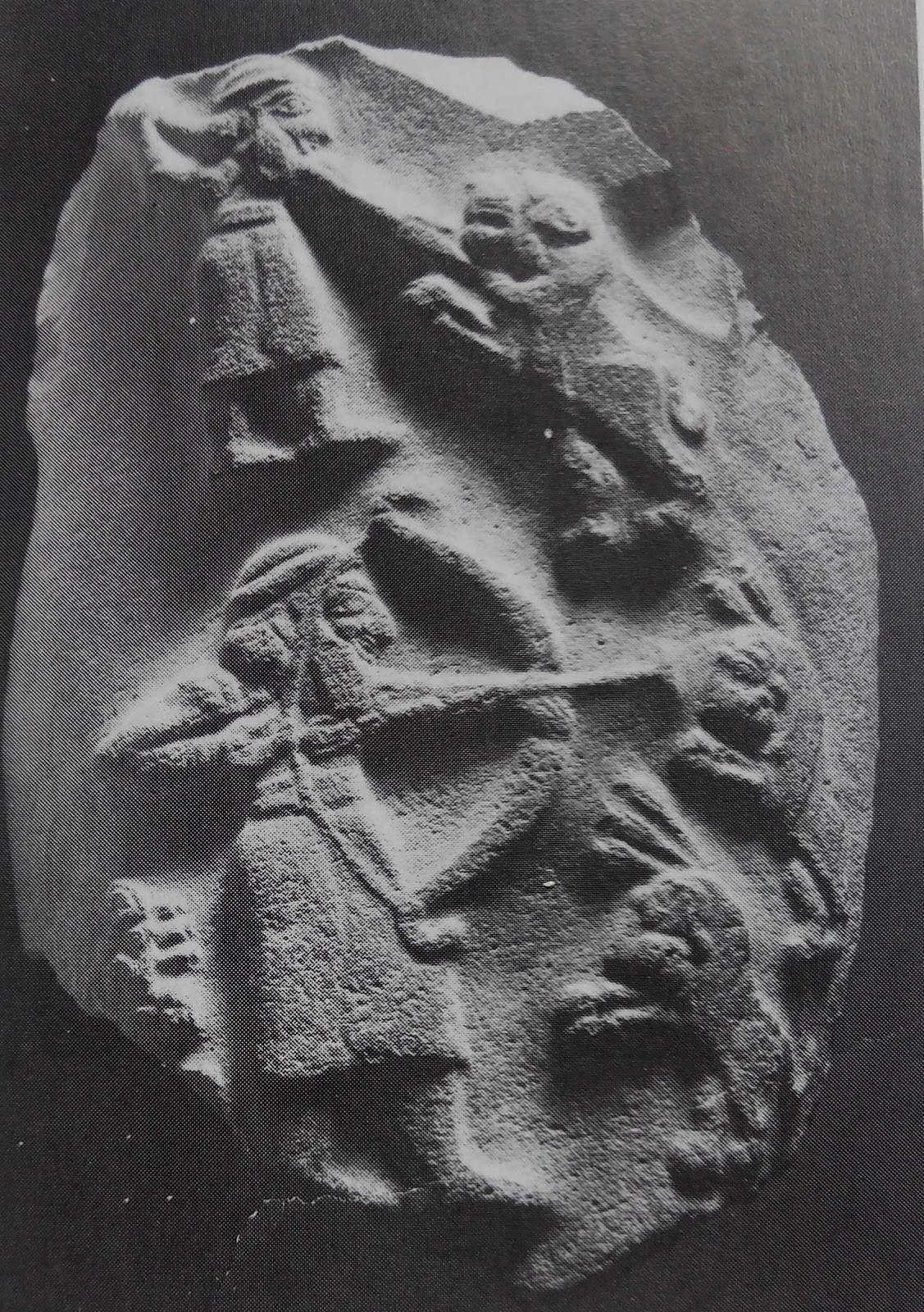 A finales del período de Uruk ya encontramos figuras como esta, que demuestran que la iconografía del gobernante sumerio está ya consolidada. En esta estela vemos a un gobernante con un arco cazando. Indirectamente también esta estela nos habla de que el trabajo en piedras duras como el granito (este caso) está ya consolidado en Mesopotamia. También estamos hablado de grandes trabajos artesanales, porque no solo se trata de trabajar una piedra dura como el granito, sino que estas estelas eran grandes piedras de considerable tamaño, y esto lo demuestra el hecho de que este fragmento tenga unos 70-80 centímetros de altura, imaginad cómo sería el resto.