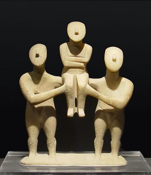 | Ejemplo de esculturillas cicládicas. Las hay esculpidas en muchas posiciones anatómicas. (Autor foto: Smial. Fuente: wikipedia) This file is licensed under the Creative Commons Attribution-Share Alike 2.5 Generic license. |