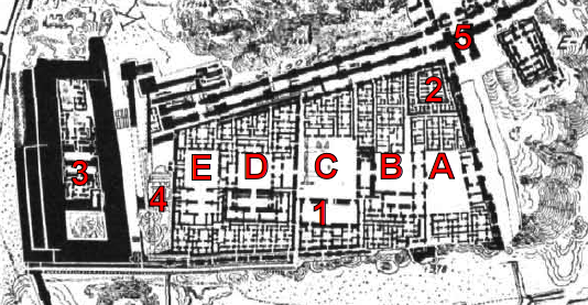 | Mapa de la ciudad de Babilonia, con el río que la atraviesa. A la izquierda la parte nueva de la ciudad. A la derecha la zona antigua. (Autor foto: Micro. Fuente: wikipedia) This file is licensed under the Creative Commons Attribution-Share Alike 3.0 Unported license and 2.0 Germany license. |