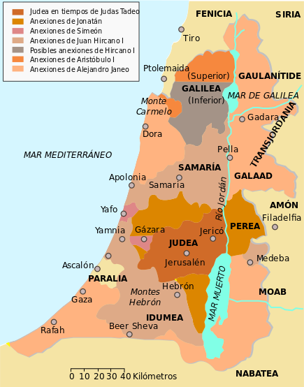 | Mapa de las anexiones hechas tras la sublevación de los macabeos (Autor foto: Redtony. Fuente: wikipedia) This file is licensed under the Creative Commons Attribution-Share Alike 3.0 Unported, 2.5 Generic, 2.0 Generic and 1.0 Generic license. |