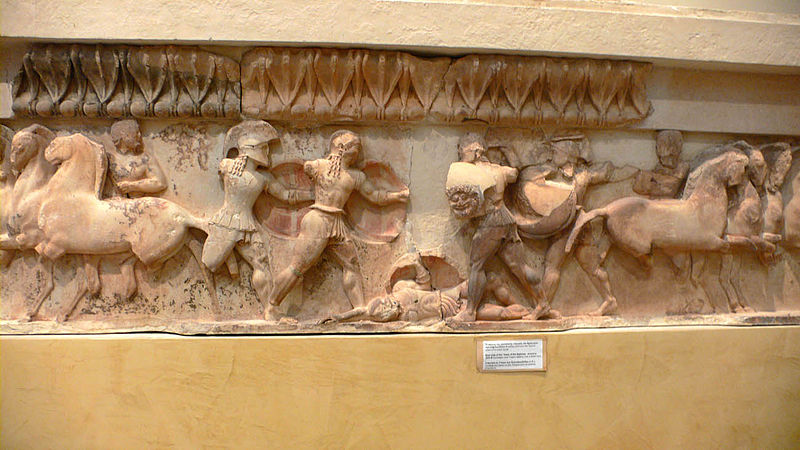 | Frontón del tesoro de los Sifnios (Autor foto: Yair Haklai. Fuente: wikipedia) This file is licensed under the Creative Commons Attribution-Share Alike 3.0 Unported license. |