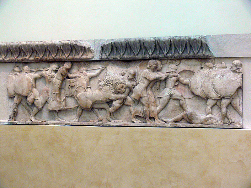 Friso Norte, donde se ve, de izquierda a derecha, a Dionisos, Cibeles (con su carro tirado por leones) y a Apolo y Artemis superpuestos