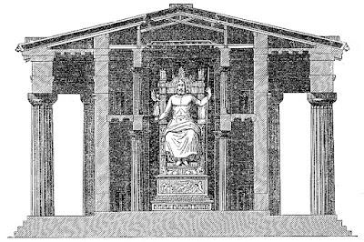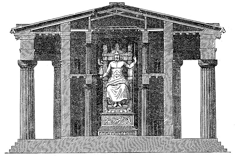 | Reconstrucción dibujada de una sección del Templo de Zeus en Olimpia - Imagen de dominio público. |