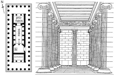 | Planta y reconstrucción del templo de Apolo Epicuros (Fuente: wikipedia. Autor imagen: Napoleon Vier from nl) This file is licensed under the Creative Commons Attribution-Share Alike 3.0 Unported license. |