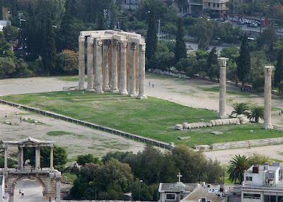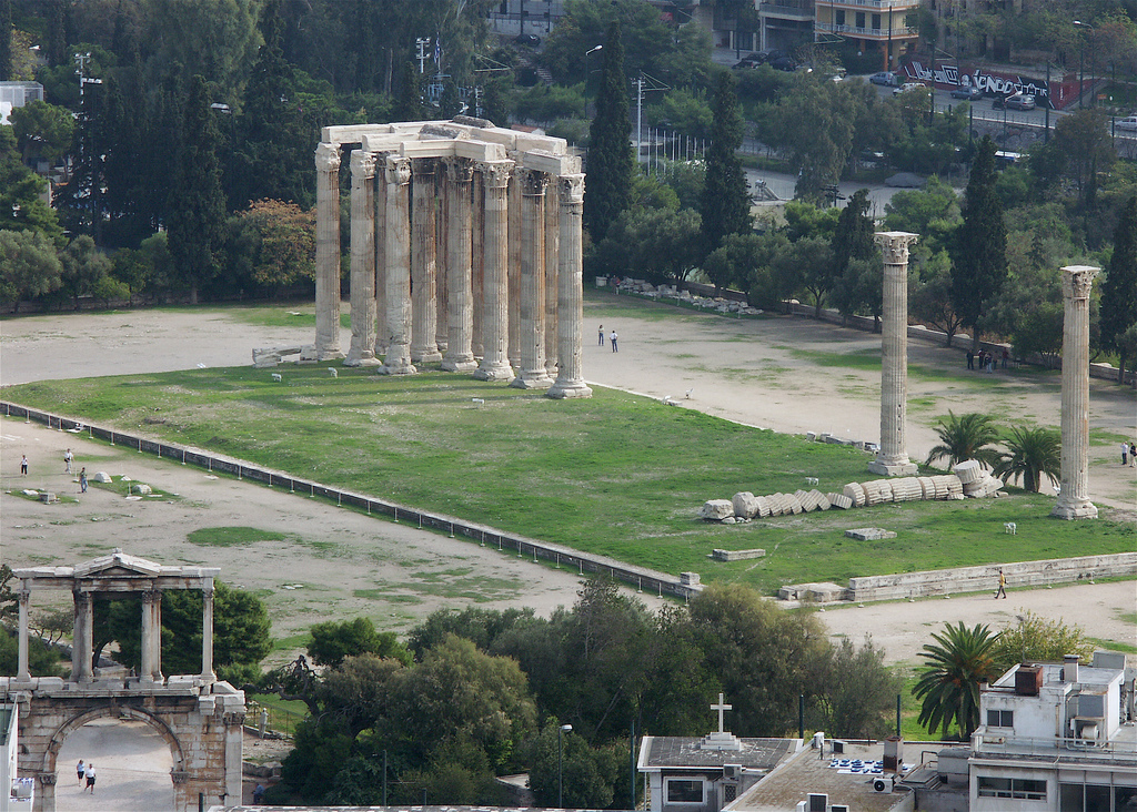 | Vista lejana de los restos del Templo de Zeus Olímpico en Atenas (Autor foto: A.J. Alfieri-Crispin Fuente: wikipedia) This file is licensed under the Creative Commons Attribution-Share Alike 2.0 Generic license. |