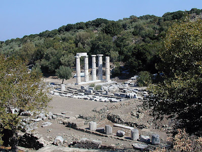 - SANTUARIO DE LOS GRANDES DIOSES DE SAMOTRACIA: Samotracia es un pequeña isla del Egeo, que contuvo quizás el más importante de los santuarios. Vamos pues a echar un vistazo a su historia: era un santuario panhelénico (todos los griegos y reinos acudían a el), en el cual usaban una lengua prehelénica para los rituales (lengua actualmente perdida). Sus fases o etapas fueron: