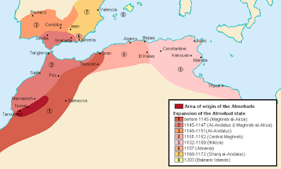 - Año 1147: Abd Al Mumin entraba en Marrakech, y allí daba muerte al último emir almorávide. Fue entonces cuando Ibn Qasi el reyezuelo el taifa de Mértola del Algarbe, solicitó la intervención de los almohades en Al Andalus, iniciándose ya el período almohade en Al Andalus, que abarca desde 1146 a 1228, y en esos 82 años hay varias fases.