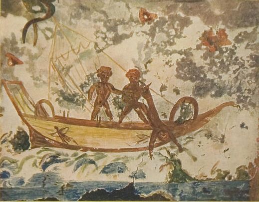 | Jonás siendo lanzado al mar, escena de la catacumba de Priscila - Imagen de dominio público. |