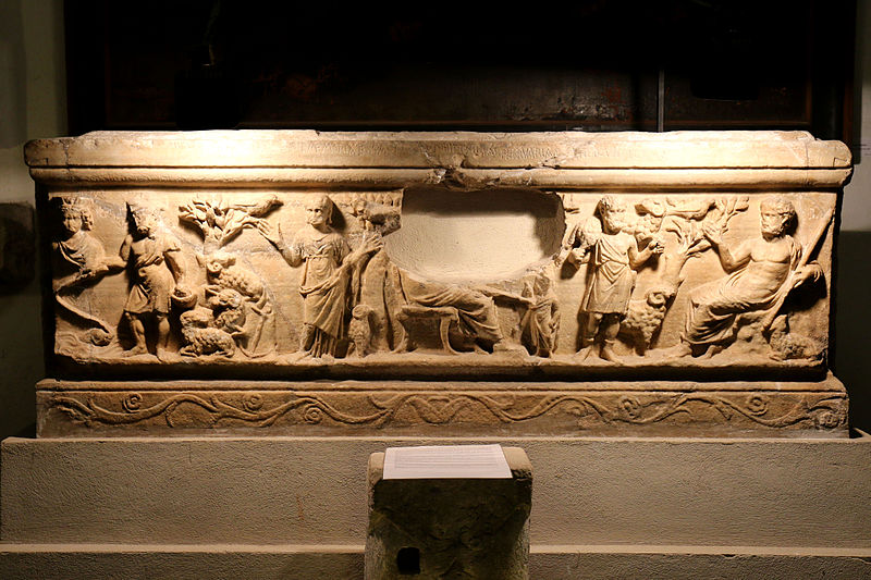 Los primeros sarcófagos cristianos (inicios del siglo III), tienen escasa intervención cristiana, o dicho de otra forma, el elemento cristiano en ellos es muy discreto, limitándose a la figura del orante, puramente alegórica, que hacía pareja con la del Buen Pastor.